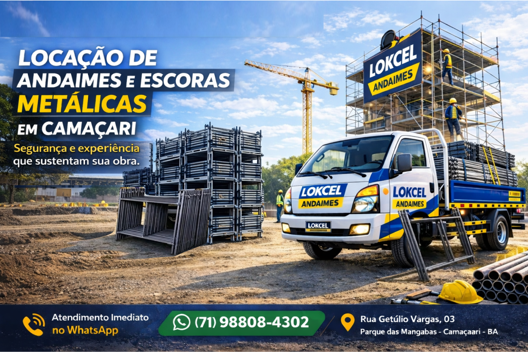 A Lokcel Andaimes atua desde 2000 em Camaçari com foco em locação de andaimes, escoras metálicas e acessórios para obras, reformas e manutenção industrial.